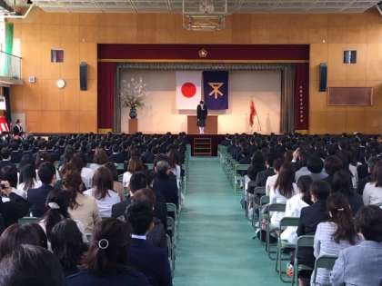 校長式辞、在校生代表による歓迎のことば、新入生代表のことばの内容で入学式を終え、学年に関わる教員の紹介をして、30分足らずで新入生の退場となりました。