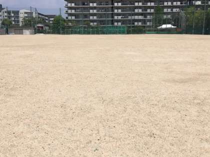 カピカピになった土。「みんな、早よ戻ってきてほしいなぁ!しゃぁないけどな」と、長いこと踏まれていないグラウンドの土が語りかけてきます。