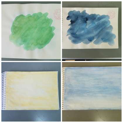 休業中の課題として、美術科1年生では、「カラーハンティング」という課題を出しました。ポスターカラーか小学校時代の水彩絵の具を使って、まずは春の色を探しに外へ。