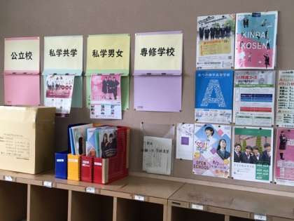 教室の後ろの掲示板には、進路に関する情報を貼るスペースがあります。今年はスタートが少し遅れていますが、今後、たくさん掲示されていきます。