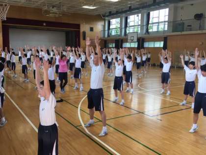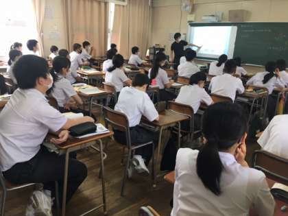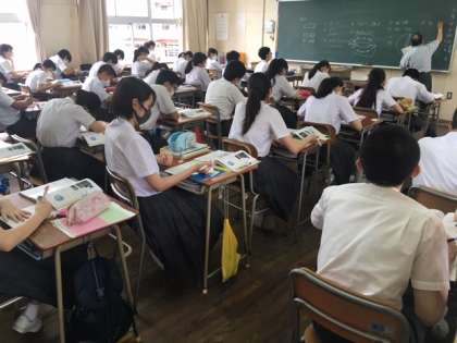 友渕中学校では、どのクラスも40人ほどいます。久しぶりに全員が揃うと、やっぱり教室が満杯な感じです。キツキツではないにしろ余裕はありませんね。