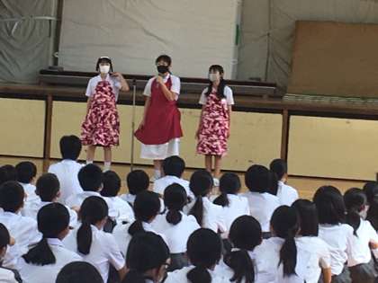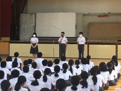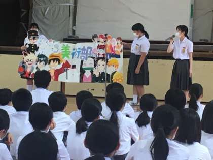 今日の6時間め、部活動紹介が行われました。各部の3年生の代表が1年生に自分のクラブの紹介をしてくれました。