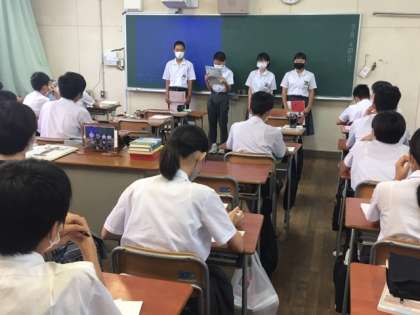 2年生の国語の授業で、班ごとでのプレゼンテーションをしています。