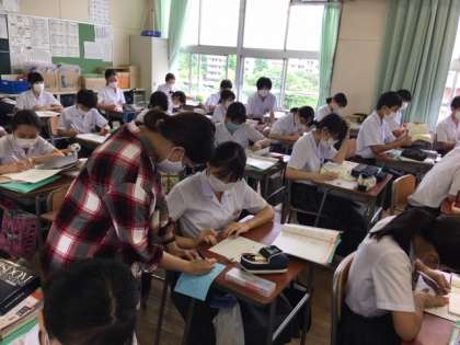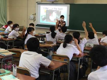 2年生の英語の授業の様子です。今日は、このクラスの英語の授業は月に1回のC−NET授業の日です。