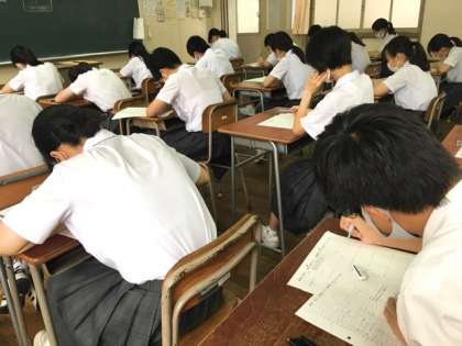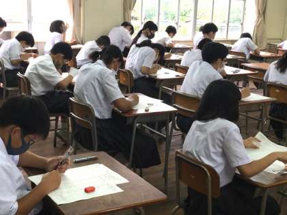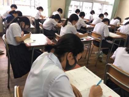 今日は、数学・理科・社会です。どの教室でも、生徒たちが真剣に取り組んでいます。