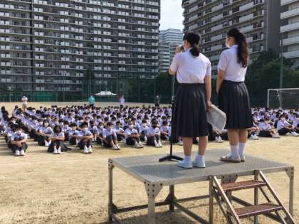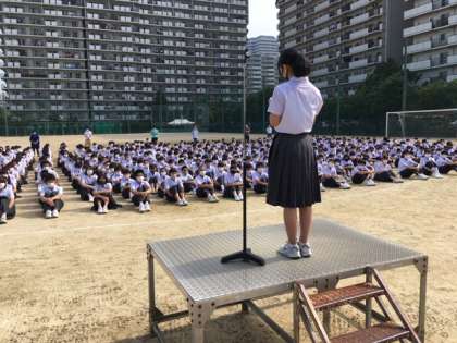 久しぶりの集会で暑い朝でしたが、定刻には全校生徒全員が揃うことができました。