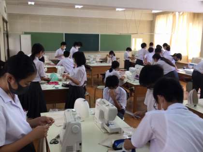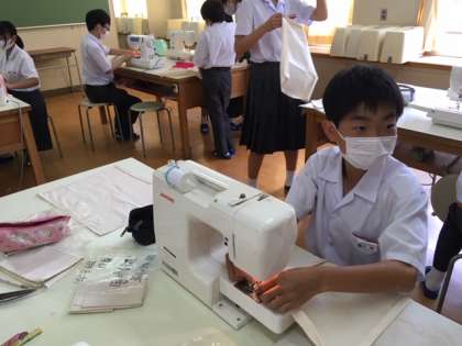 1年生の家庭科の授業では、現在、ミシンの使い方を学んでいます。