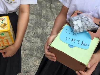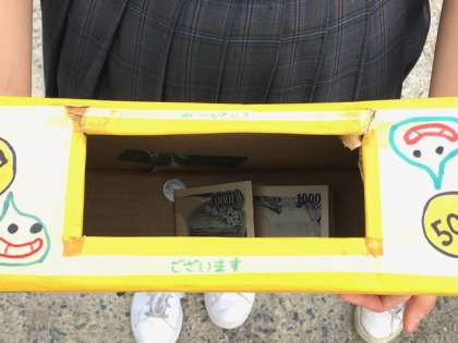 今朝は、募金箱に札を入れてくれた人が複数いたり、1円玉を500個貯めて持ってきてくれた人もいました。今朝だけで13,574円の募金がありました。