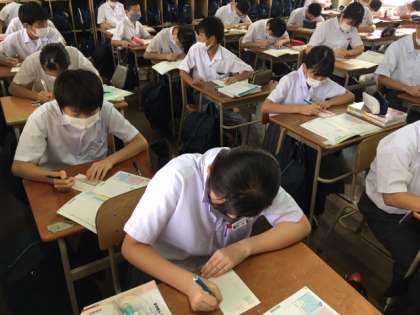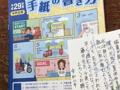 残暑見舞いを書いていて、みんな、担任の先生や部活動の顧問の先生に出しているようです。