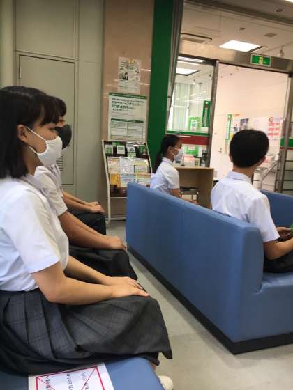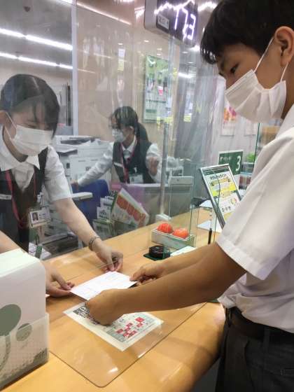 1学期の終わりに生徒会で取り組んだ「あしなが募金」を、本日、銀行に行って振り込みました。銀行から「あしなが育英会」に届けられます。