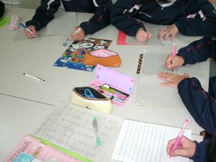 放課後、1年生は自主的に集まり、英語学習を続けています。