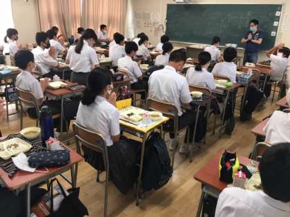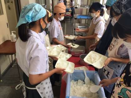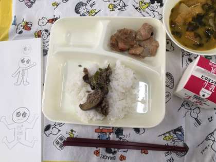 今日の給食献立は、ごはん・鶏肉のてり焼き・なすのそぼろ炒め・牛乳です。