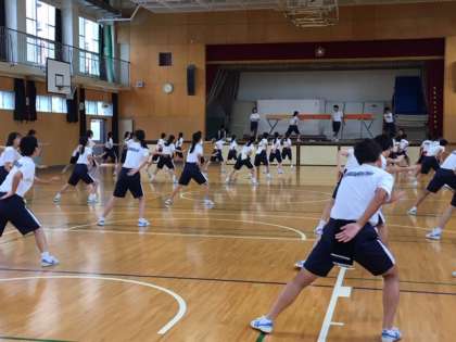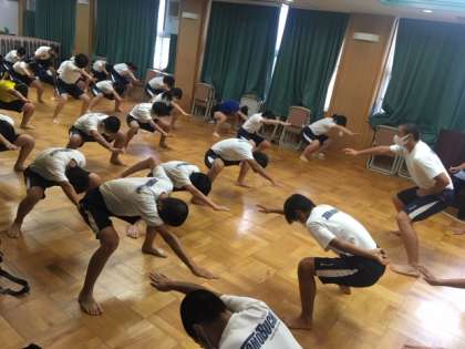 が、今年度の3年生の友中ソーランは、コロナの様々な制約で、例年より随分と遅れています。夏から、体育委員と有志のメンバーで、始業前に多目的室で朝練を行っています。週に数回、自分たちでやる日を決めて先生に願い出てきます。