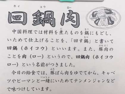 中華料理では、材料を煮たものを鍋に戻し、炒めて仕上げることを「回す鍋」と書いて回鍋(ホイコウ)といいます。豚肉のことを肉(ロー)というので、回鍋肉(ホイコーロー)という名前がついたそうです。