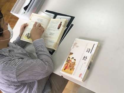 今回は、紀元前に孔子がまとめたと言われる中国最古の詩集「詩経」を読みました。読むといっても難しいので、老師が選んでくれた詩を読んで、中国語と中国の文化を学びました。