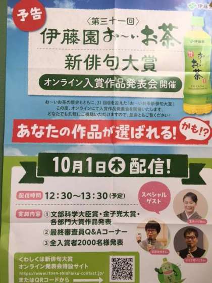 2年生で取り組んだ俳句で、「伊藤園お〜いお茶新俳句大賞」に入選しました。佳作特別賞1名、佳作賞2名です。