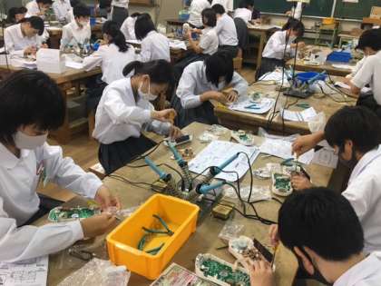 2年生の技術の授業では、現在、ラジオ製作に取り組んでいます。