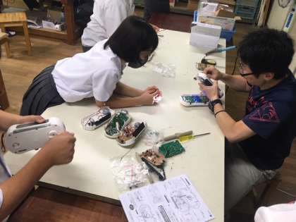 手動充電器付きFM・AMラジオで、防災用としても重宝します。だんだんと完成する生徒も出てきました。