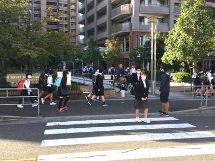 今日は土曜日ですが、普通授業を行っています。朝の登校の様子から小学校も同じく土曜授業のようです。