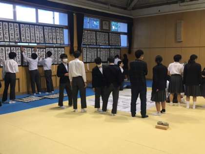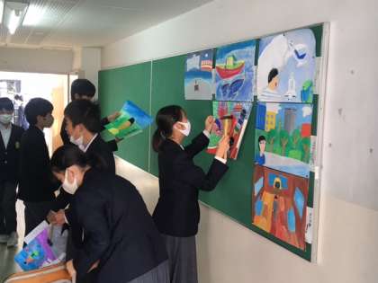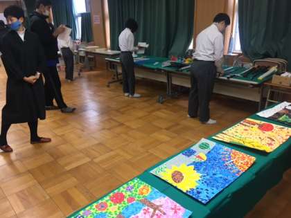 教室、廊下、格技室など、校内のあらゆる所で先生たちとたくさんの生徒が熱心に展示準備をしていました。