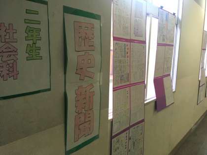 社会科では、毎年恒例で2年生は歴史新聞を制作します。人物だけでなく、お菓子や出来事などバラエティに富んだ作品も多く、読みごたえのあるものが並びました。