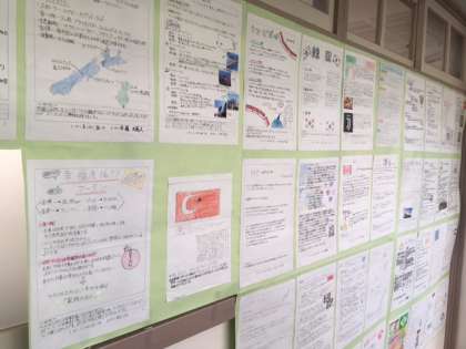 1年生は地理の学習の一環で、世界の国しらべをしました。力作ぞろいです。