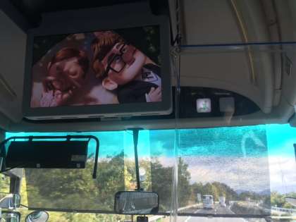 一回めのトイレ休憩までは、自由に過ごしていました。お昼まで時間があるので、DVDを見ることになりました。