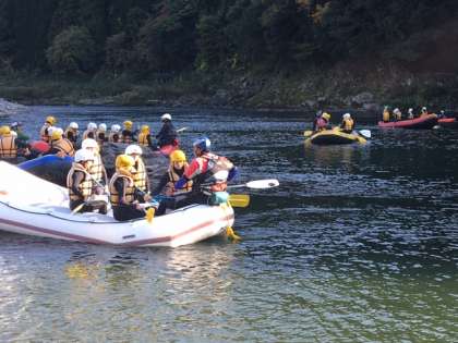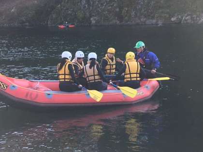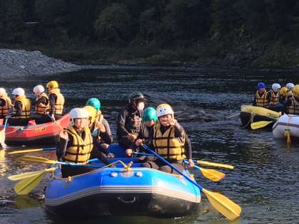 ラフティングのスタート地点です。説明を受けて、練習して、いよいよ出発!