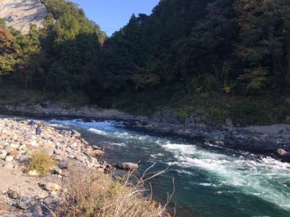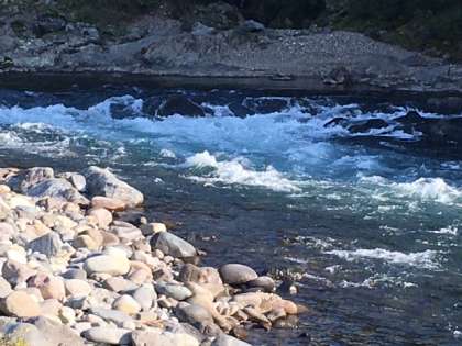 シャッタースポットに先回りしています。もうすぐ、子どもたちがこの急流ポイントに差し掛かってくる予定です。