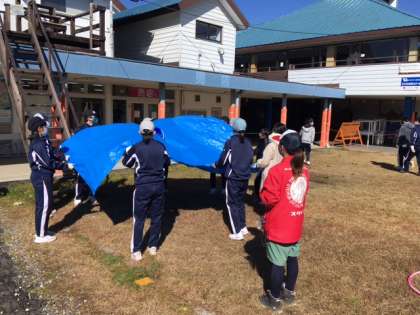 少しお昼まで時間があるので、インストラクターさんが、班ごとにアウトドアゲームをしてくれました。