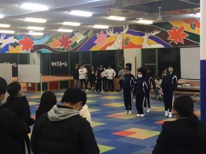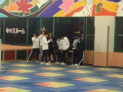 ひと足早く夜レク実行委員が集合した、準備をしています。
