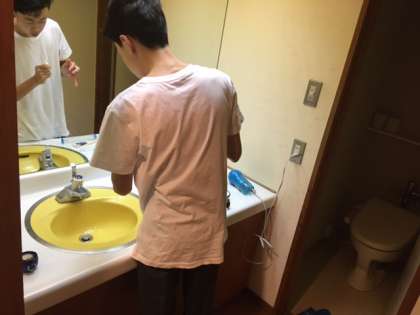 今から7時の朝食までの間に、洗顔、検温、出発準備をします。