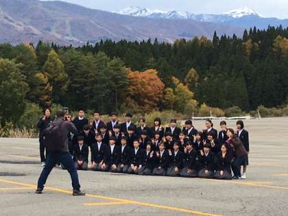 出発前に、白山連峰をバックにクラス写真を撮影しました。