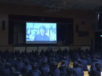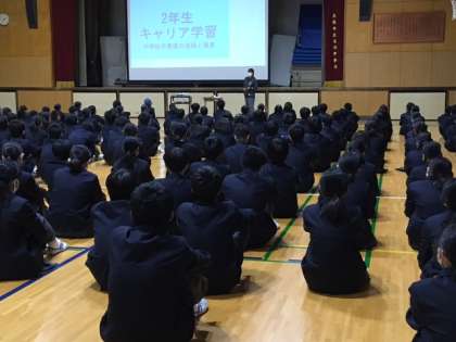 6限め、体育館に入って、色々な職業について説明を聞いたり、職場体験の話から考えたり、NHKアーカイブスを観たりしました。