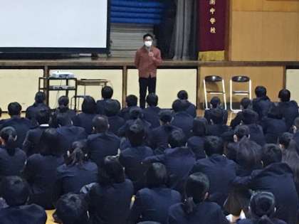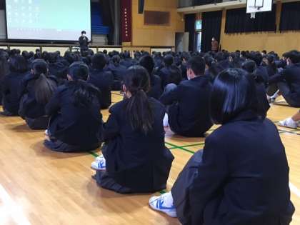 6限め、3年生は体育館で進路に向けた取組みをしました。