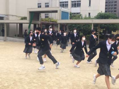 6限め、避難訓練を実施しました。今回は火事を想定した訓練です。