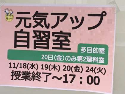 来週の水曜日から期末テストです。テストに向けて、今日から「元気アップ自習室」が始まりました。