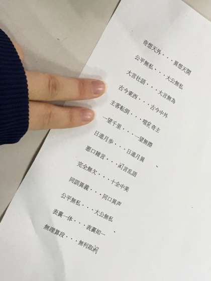 日本語の四字熟語が中国語ではどうなるか?意味の確認をしながら学びました。