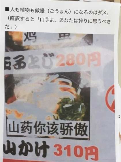 「山かけうどん」の中国語表示がえらいことになってます!
