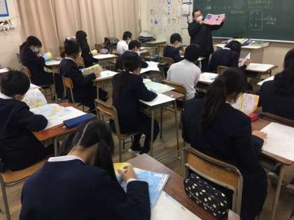社会科講座1では、「世界の国々を覚えよう」様々な国の国旗のパネルを見て、色々な国について学びます。
