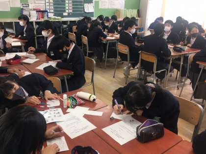 2年生は、先日行なった進路学習「職業ワークショップ」のまとめをグループごとで行いました。