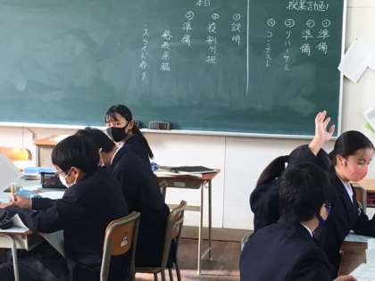 今日はその一回めで、学習内容の説明と、班ごとでの協議の時間です。役割分担を決めて、みんな楽しそうに前向きに取り組んでいます。