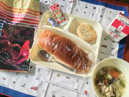 今日の給食献立は、黒糖パン・豆腐ハンバーグ・カリフラワーのスープ煮・固形チーズ・牛乳です。