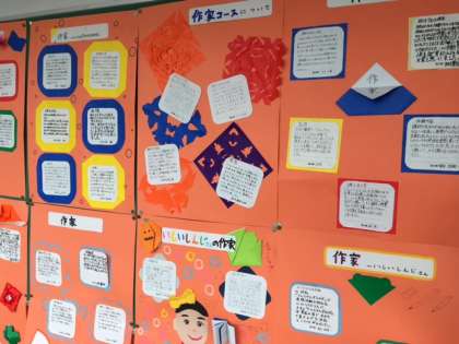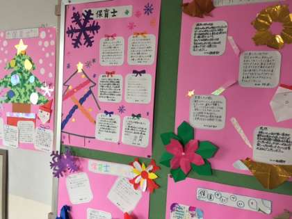 それぞれの講師の方々から聞いた内容や感想を、きれいに仕上げて掲示板に貼ってくれています。