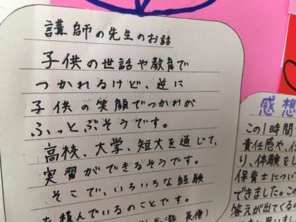 先日、2年生で行ったキャリア教育「職業ワークショップ」の事後活動です。