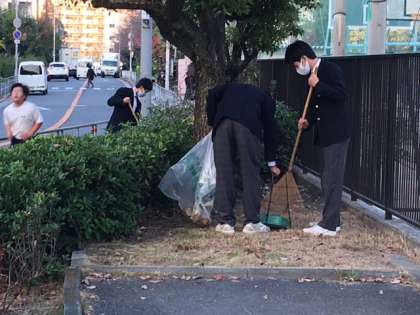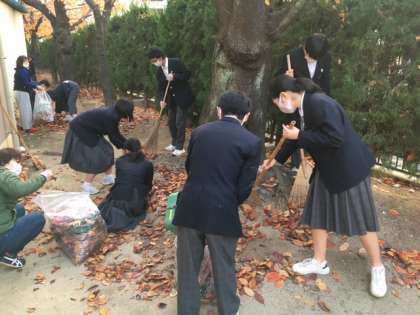 生徒議会メンバーの清掃後の感想では、「日頃の生活で汚れていた自分の心が、落葉とともにきれいになりました!」と言ってました。