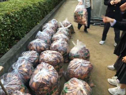 友渕中学校内外を30分ほど清掃しました。ほとんどが落葉でしたが、ゴミ袋27個分が集まりました。