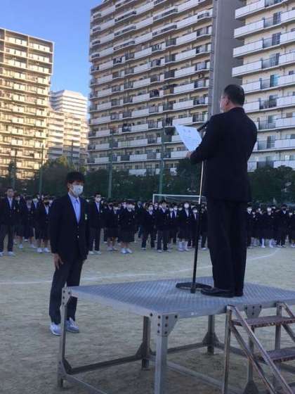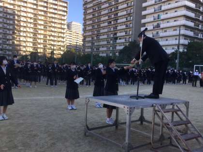 学校長からは、寒さに縮こまってしまわずに、冬の寒さを受け入れて、胸を張って、堂々と困難に立ち向かっていきましょう、との話がありました。
