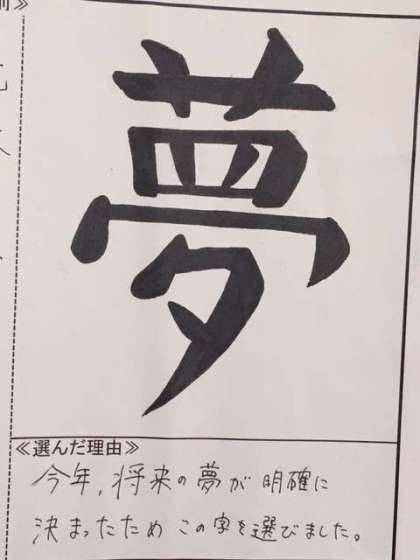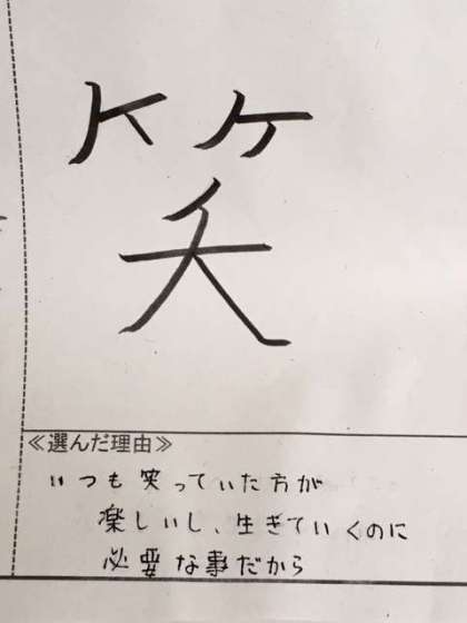 清水寺で行われた「今年の漢字」は「密」でしたが、1年生のクラスで、生徒それぞれの漢字を選んでいました。