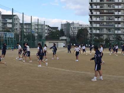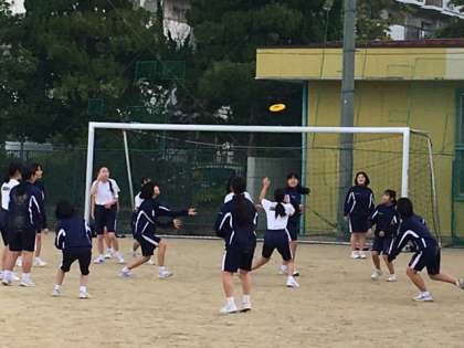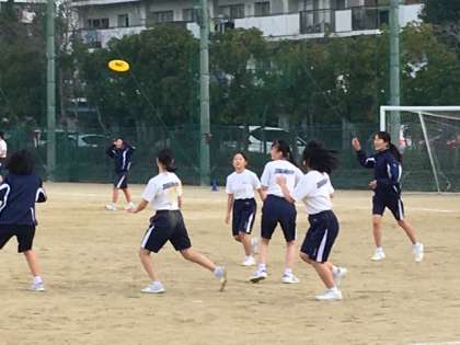 2学期最後の体育の授業は、男女ともアルティメットのゲームをしています。